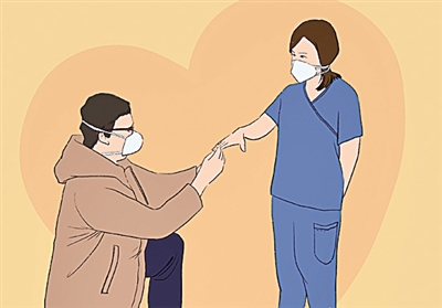 河南省直第三人民醫(yī)院的護(hù)士劉光耀,因支援湖北戰(zhàn)“疫”前線(xiàn),推遲了訂婚。臨行前,他用回形針作婚戒,向女友求婚。沒(méi)有鮮花、沒(méi)有鉆戒,但是,有你有我有愛(ài)。