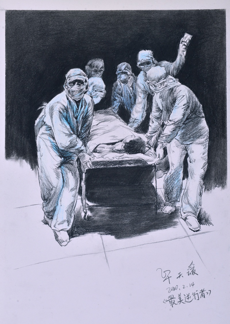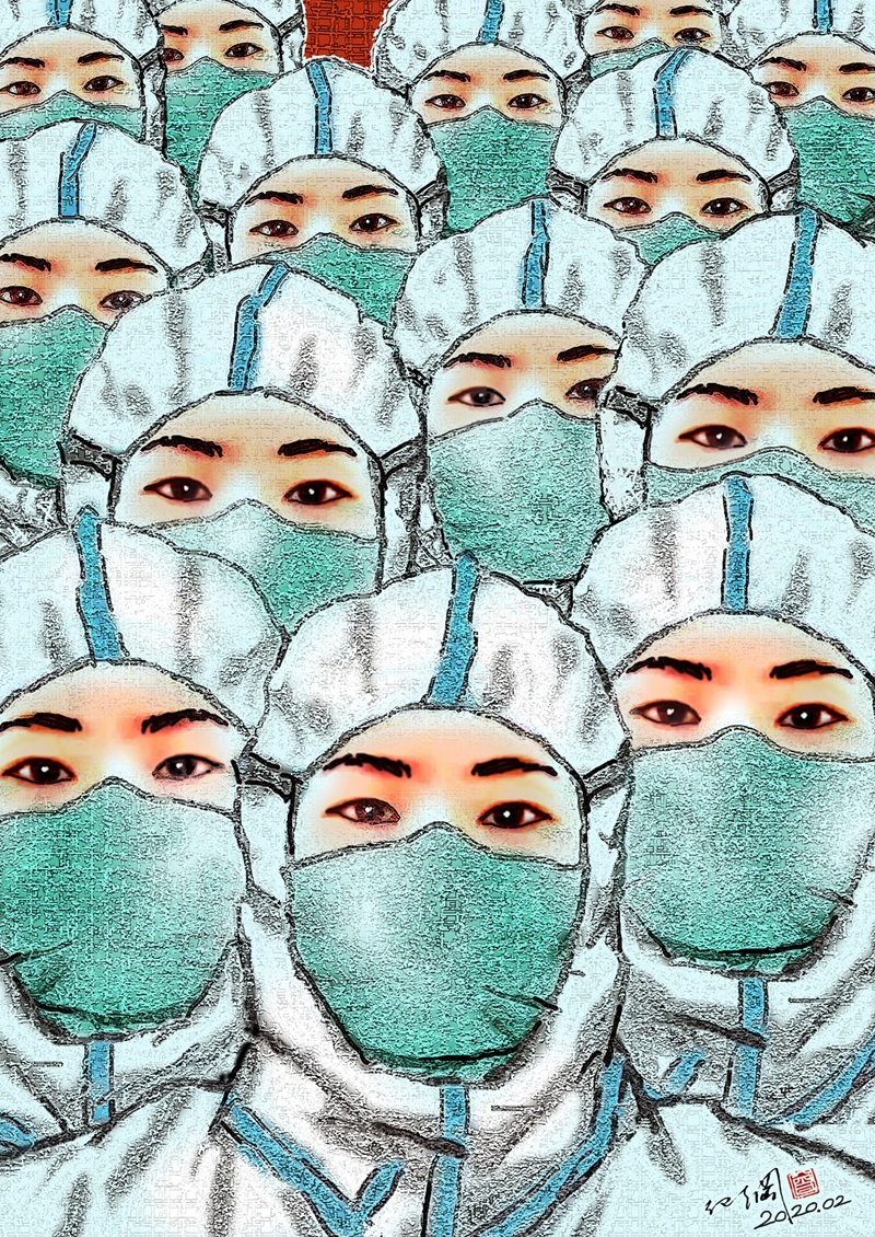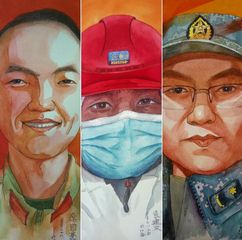 參與創(chuàng)作的文藝工作者中,既有學(xué)生,也有公務(wù)員、退休人員、專業(yè)畫家,既有“00后”,也有“60后”、“70后”、“80后”……他們通過素描、水彩畫、數(shù)字繪畫等形式,記錄下了這場防疫阻擊戰(zhàn)中值得銘記的時刻。