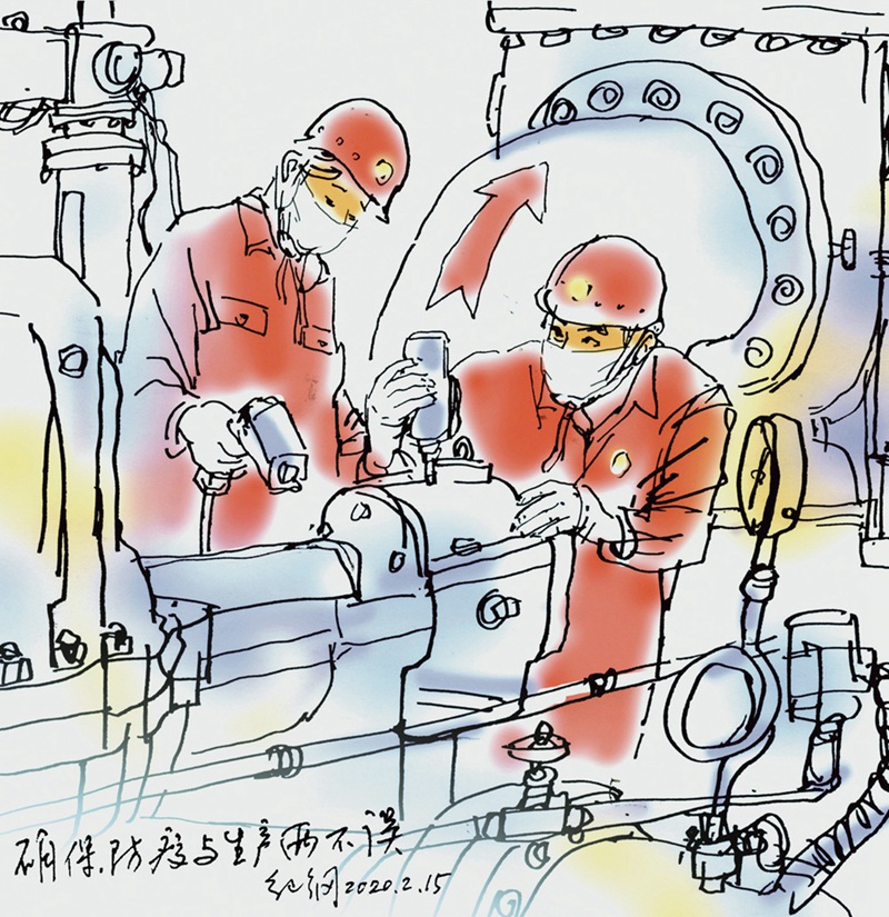 曾紀(jì)綱曾在《中國石油報》工作,退休后,他把更多的時間放在了藝術(shù)創(chuàng)作上。他說:“戰(zhàn)‘疫’取得初步成效后,復(fù)工復(fù)產(chǎn)非常重要,用繪畫的形式反映疫情防控期間,企業(yè)復(fù)工的真實場景,既是在向戰(zhàn)‘疫’的英雄們致敬,也是在踐行自己作為文藝工作者的責(zé)任與使命。” 曾紀(jì)綱希望通過自己的創(chuàng)作,為戰(zhàn)“疫”前線堅守的人們鼓勁兒,也為長期建設(shè)國家的石油工人吶喊助威。