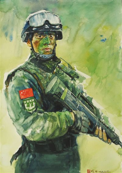 李曉林水彩畫《特戰(zhàn)隊(duì)員》——斑斕的迷彩綠,彰顯軍人的熱血擔(dān)當(dāng)。無(wú)論是在訓(xùn)練場(chǎng)磨礪青春,還是在搶險(xiǎn)救災(zāi)最前線挺起不屈的脊梁,鐵骨錚錚永遠(yuǎn)是軍人的氣節(jié)。 |