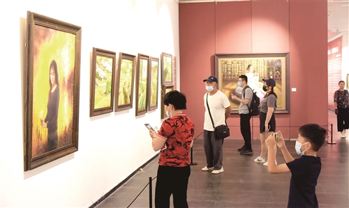 為記者解說油畫作品的是位身著朝鮮族傳統(tǒng)服飾的年輕女孩,策展方特意派出了數(shù)名這樣穿著的解說員,為觀眾營(yíng)造了沉浸式的觀展體驗(yàn)。