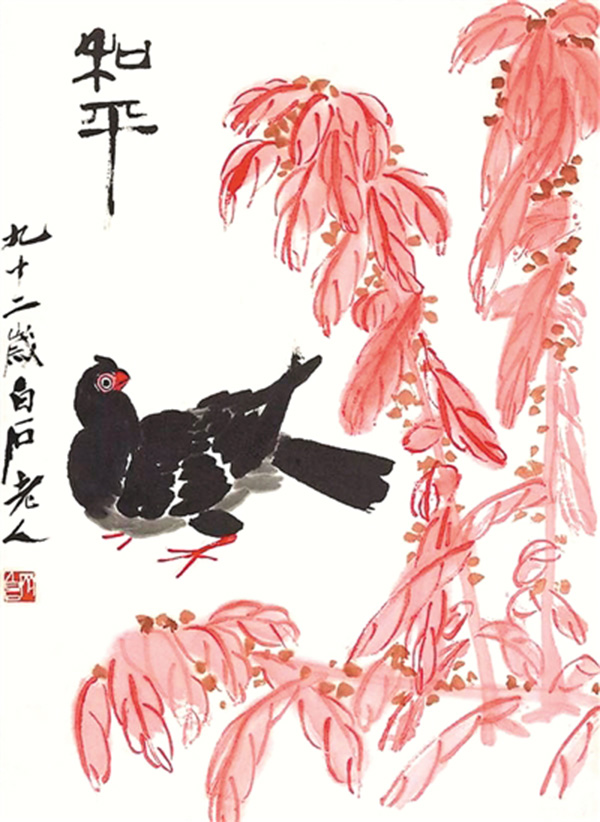 齊白石曾自述,“正由于我愛我的家鄉(xiāng),愛我祖國美麗富饒的山河大地,愛大地上一切活生生的生命。因而花了我畢生精力,把一個普通中國人的情感畫在畫里,寫在詩里。直到近幾年,我才體會到,原來我追逐的,就是和平。”