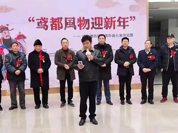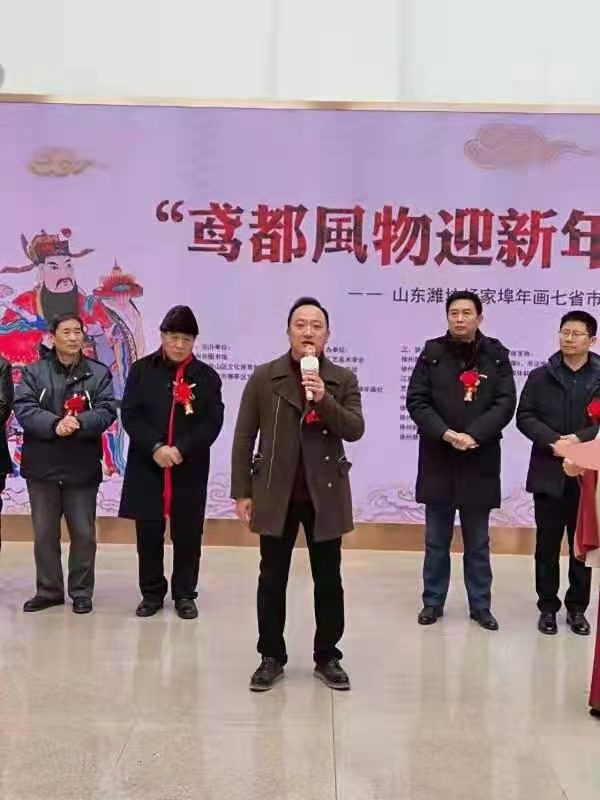 黃淮網(wǎng)消息12月19日,“鳶都風(fēng)物迎新年”山東濰坊楊家埠年畫七省市巡回展徐州站在江蘇徐州市圖書館開幕。來自山東濰坊、江蘇徐州等地的書畫藝術(shù)家、民俗文化學(xué)者、非遺傳承人及收藏愛好者50余人參加了活動。