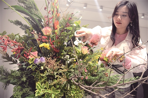 插花的材料取于大自然的各個角落,因季節(jié)變化而不同。在藺詩淇眼中,“花代表了希望,代表了美麗,代表了生命的意義。”“我們用開滿鮮花的眼睛看世界,滿世界都是鮮花。” |