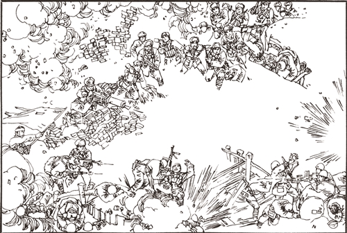 雖然只是一套連環(huán)畫,但是王其鈞和高洪嘯在準(zhǔn)備工作上下了很多功夫!痘春4髴(zhàn)》中的大場景很多,在獨(dú)幅的小作品中要表現(xiàn)上百人,還有坦克大戰(zhàn)。為更好地進(jìn)行創(chuàng)作,他倆多次到陳官莊、碾莊等淮海戰(zhàn)役戰(zhàn)場舊址實(shí)地考察、走訪。