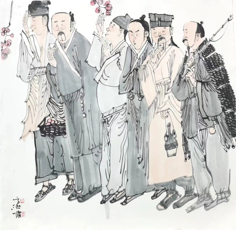 高洪嘯是有影響力的寫意人物畫家。他早年三進(jìn)南藝學(xué)習(xí),獲得過劉海粟獎(jiǎng)學(xué)金,素描、色彩、國畫、油畫、水粉、水彩、連環(huán)畫、宣傳畫、壁畫等都有不同程度的探究。入職徐州國畫院后便一門心思研究國畫人物,其主題性創(chuàng)作作品曾多次入選國家級(jí)重要展覽。九十年代全國性畫展相對較少,能連續(xù)參展且獲得金銀銅等各類獎(jiǎng)項(xiàng)也是同行中為數(shù)不多者。他很快成為中國美協(xié)會(huì)員,并擔(dān)任徐州書畫院院長。