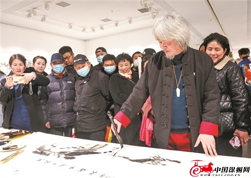“我們想通過畫展呈現(xiàn)的,不僅是某位個體畫家的展覽,更是一個有節(jié)奏感、有韻律感的藝術(shù)品。”徐州美術(shù)館策展負(fù)責(zé)人王國宇介紹,“為了把畫展做得更好,我們以互動的手段,請畫家現(xiàn)場創(chuàng)作,拉近畫家和觀眾之間的距離,讓藝術(shù)作品飛入尋常百姓家,和觀眾聯(lián)系得更緊密。” |