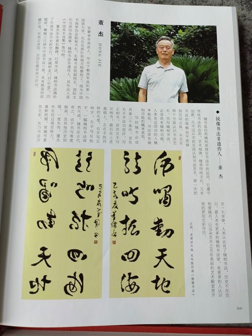 董杰先生認為,功力深厚修法帖,特異奇能書鏡相。鏡相書法是書法,超越了書法本身的文化魅力。比如可以用鏡相書法寓意人生修身的正反兩面,也可以意會量子力學(xué)的玄妙法則。董杰先生鏡相書法堅持習(xí)練了十年,他的內(nèi)心有一種向上的力量,在促使他在鏡相書法之路上繼續(xù)前行。