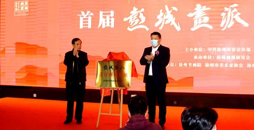 張愛軍、盧波共同為“彭城畫派”美育研創(chuàng)基地揭牌。