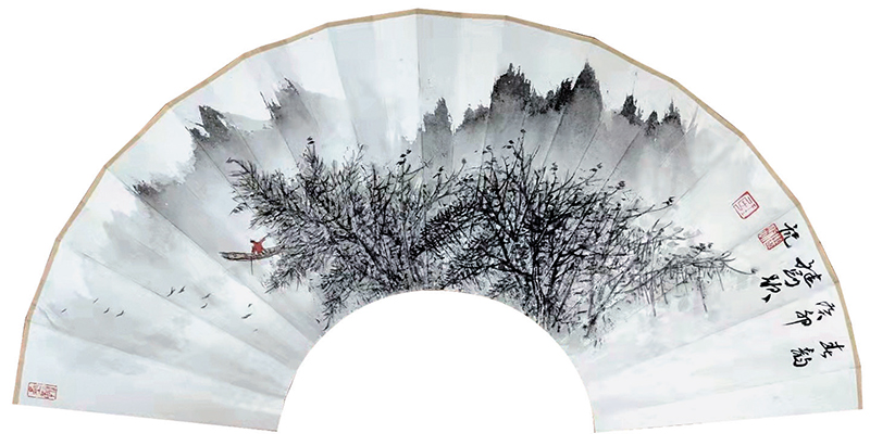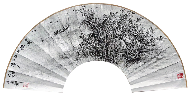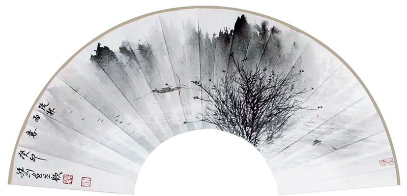 舉網(wǎng)荒江懷別趣 魚(yú)蝦不捕捕秋光 扇面
