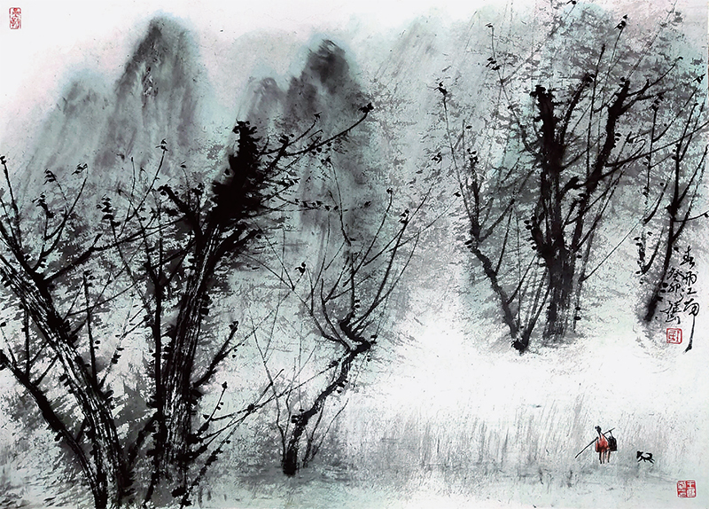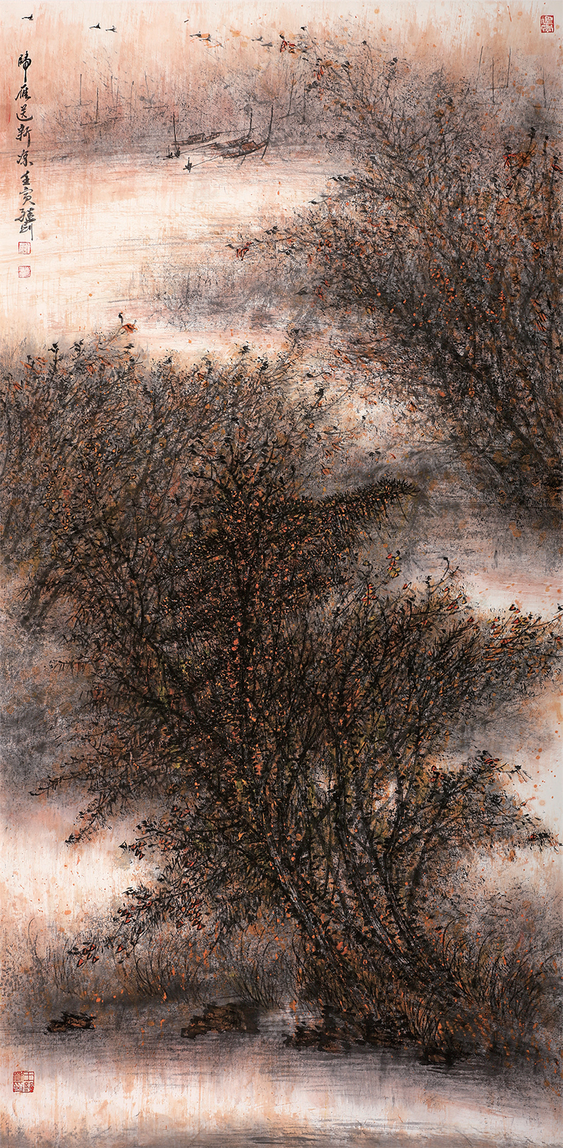 藝術(shù)比生活更有趣,好的藝術(shù)作品,應(yīng)是靈感被激發(fā)后、通過(guò)姊妹藝術(shù)的珠聯(lián)璧合。融入獨(dú)特的筆墨語(yǔ)言,遷想妙得營(yíng)造自己的心境,從而傳對(duì)傳統(tǒng)之認(rèn)識(shí),傳對(duì)技法之妙用,傳對(duì)生活之感悟,傳對(duì)自然之理解,傳內(nèi)在之情思也。