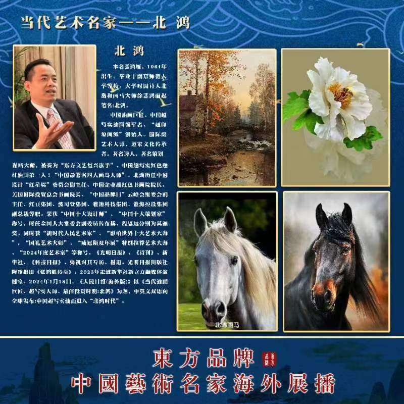 在國(guó)際藝術(shù)舞臺(tái)上,北鴻先生的名字已然熠熠生輝,他即將在“藝術(shù)之巔——中國(guó)當(dāng)代藝術(shù)名家紐約時(shí)代廣場(chǎng)視頻展播工程”中亮相,將中華藝術(shù)的精髓帶到世界的舞臺(tái)中心。