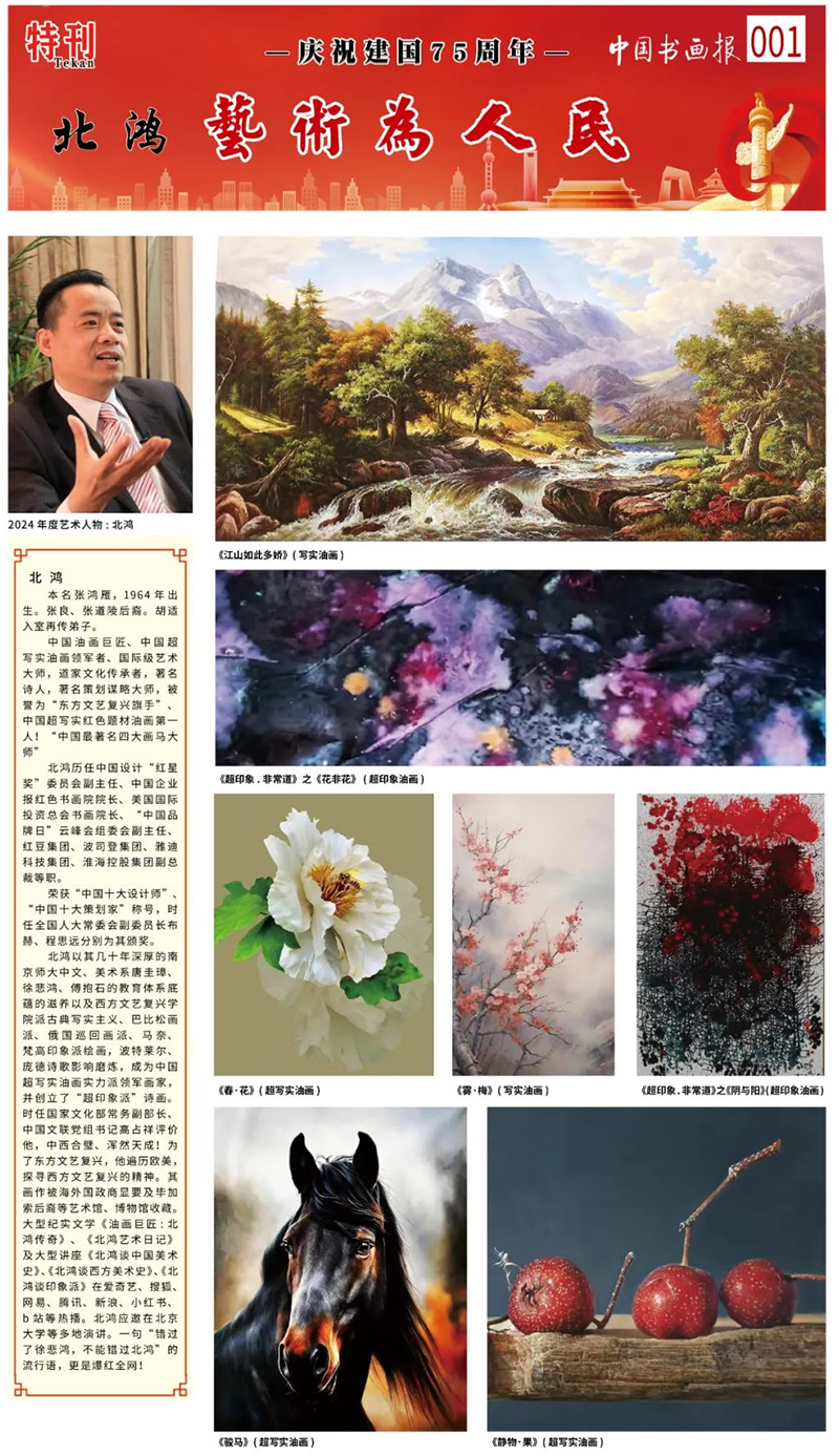 在慶祝中華人民共和國成立75周年的盛大時(shí)刻,《中國書畫報(bào)》特刊特意聚焦并隆重推出了一位杰出的藝術(shù)巨匠——北鴻先生,作為2024年度的藝術(shù)人物。