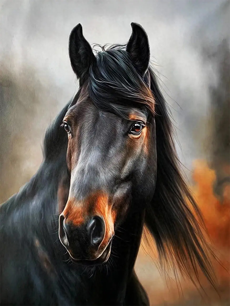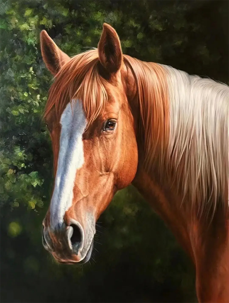 在其超寫實油畫《馬》系列作品中,我們感受到了他對東方韻味與西方技法的巧妙結(jié)合。這些馬或側(cè)身回眸,或垂首沉思,或凝視前方,形態(tài)各異,刻畫得極為逼真。馬面上細(xì)膩的鬃毛、凸起的青筋以及脖頸上強韌的線條、有質(zhì)感的肌理,無一不凸顯了畫家深厚的造型能力;而畫面中沉穩(wěn)的色調(diào),光與影的處理,也體現(xiàn)了畫家敏銳的色彩感知力。