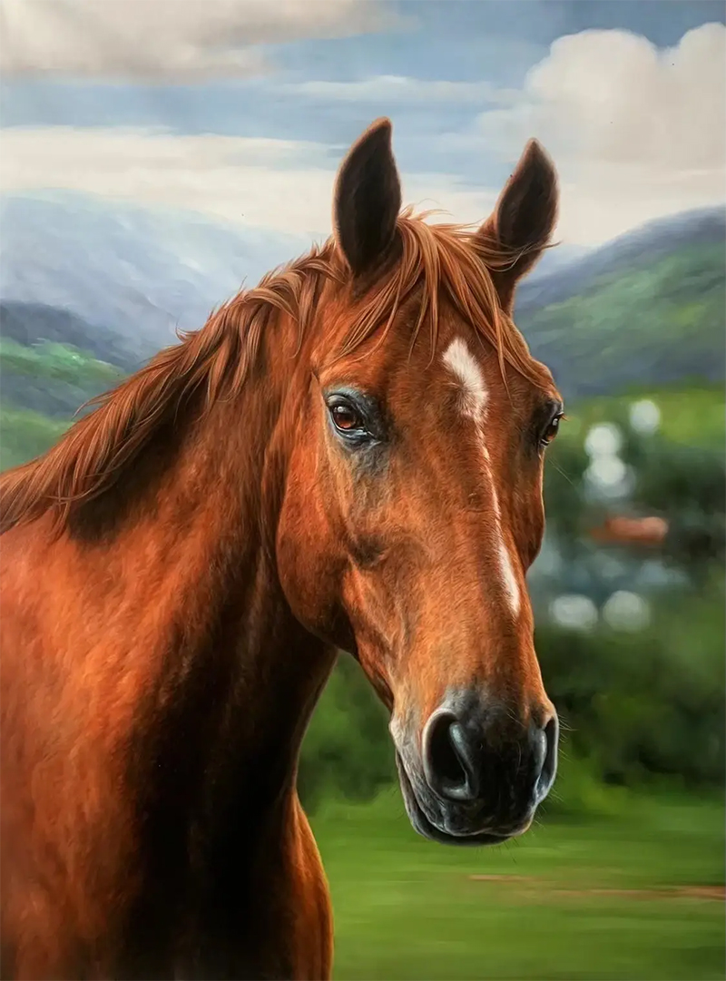 北鴻先生超寫實油畫首先在視覺上給人強烈的震撼,以超寫實主義的手法精確將馬描述出來。他細(xì)致的刻畫了馬的每一個細(xì)節(jié),以至于幾乎可以感受到畫布上充溢來自野性的能量。