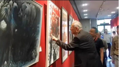 北鴻先生將大幅畫布鋪于地面作畫,在無拘無束中盡情揮灑。他深受中國文化熏陶,作品始終洋溢著東方氣息,講究氣韻。