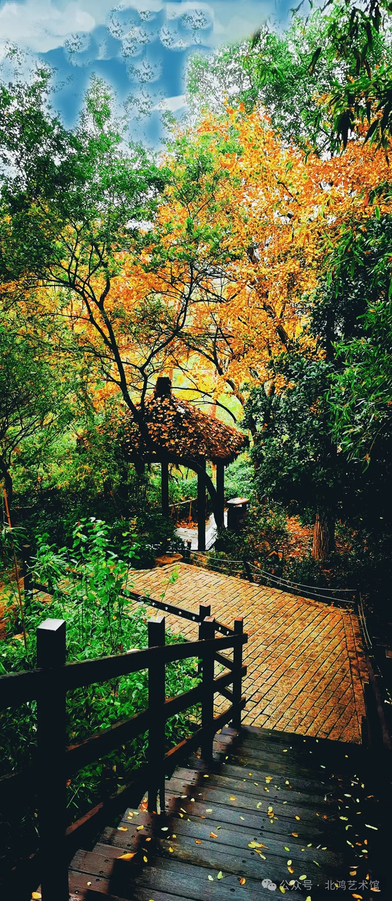 小徑的盡頭,一座小亭子靜靜地佇立,屋頂上覆蓋著厚厚的落葉,如同秋天的使者,宣告著季節(jié)的更迭。周圍的樹木枝葉交織,形成了一片綠色的天幕,而樹葉的顏色從翠綠逐漸過渡到金黃與橙紅,仿佛是大自然的調(diào)色盤,將秋天的韻味盡情揮灑。這座小亭子,成為了這片秋色中的點睛之筆,它靜靜地訴說著歲月的故事,讓人感受到一種難以言喻的寧靜與美好。