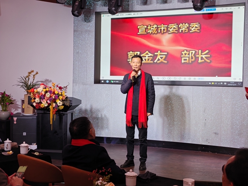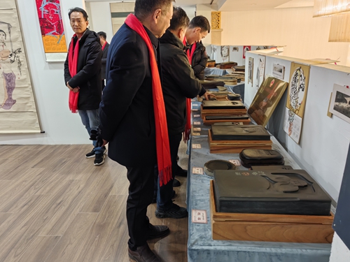 出席開幕式的領(lǐng)導(dǎo)嘉賓有:宣城市委常委、宣傳部部長郭金友,原海軍航空兵政治部主任陸德康將軍,安徽省政府咨詢機構(gòu)對外交流合作協(xié)會會長邾根斌,原宣城市政協(xié)主席、宣城文房四寶協(xié)會會長張平,原宣城市政協(xié)副主席、一級巡視員張黎勇,市人大教科文衛(wèi)工委夏元利主任,中國美協(xié)理事原安徽省美協(xié)主席楊國新,中國歙硯協(xié)會會長、國家高級工藝美術(shù)師方見塵,安徽省銀保監(jiān)局二級巡視員周自文,安徽省李鴻章研究會終身名譽會長李魯生,宣城市市文聯(lián)主席潘麗華,宣城市美協(xié)主席呂小平,宣城市書協(xié)主席江俊,宣硯集團董事長黃太海,石濤美術(shù)館館長劉燕凌,方見塵藝術(shù)院張淑燕院長,宣石博物館館長張金龍等。