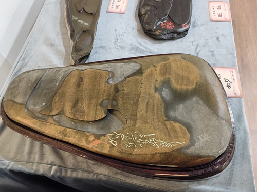 作為生于斯,長于斯的藝術(shù)家,方見塵飽受徽文化浸染,徽派硯雕的妙處在他的作品中體現(xiàn)得淋漓盡致,無論是形如泉眼、隕石,還是狀如琴頭、木屐或冊頁,都昭示著視覺形態(tài)在文化源頭上的閃爍,揭示了以小見大、以拙勝巧、雄渾天成的魅力。