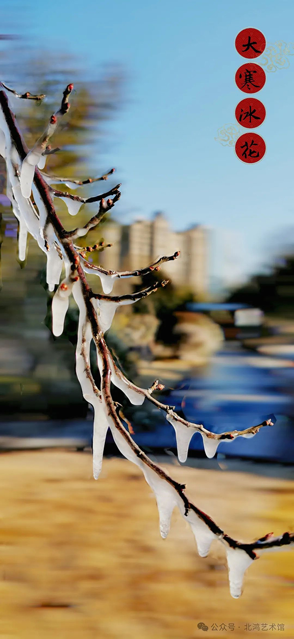 抬頭望去,藍(lán)天澄澈如寶石,與冰掛相互映襯,更顯冰掛的晶瑩剔透。遠(yuǎn)處的高樓,在藍(lán)天的背景下,雖略顯清冷,卻也為這冬日的自然景觀增添了一抹現(xiàn)代的氣息,仿佛是兩個(gè)時(shí)空的交融,展現(xiàn)出一種獨(dú)特的和諧之美。