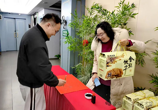 現(xiàn)場沉浸在迎蛇年慶新春的歡樂氛圍中,背景板上“迎蛇年慶新春 2025徐州收藏家協(xié)會新春年會”的字樣格外醒目。簽到現(xiàn)場熱鬧非凡,嘉賓們簽到后,喜領(lǐng)隨手禮,臉上洋溢著喜悅之情。周圍人群穿著各式冬裝,面帶笑容,相互間互動交流,背景中的綠植生機盎然,與精心布置的燈光相得益彰,共同烘托出熱鬧且溫馨的場景,充分展現(xiàn)了收藏家協(xié)會新春年會的歡樂與祥和,洋溢著濃濃的節(jié)日氛圍。