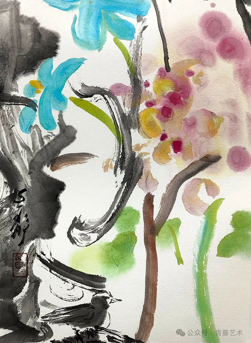 吳冠南先生是當代大寫意花鳥畫的代表性人物,他的繪畫主觀感情色彩強烈,筆墨揮灑放縱,把在生宣紙上隨意控制筆墨以表現(xiàn)情感的寫意花鳥畫技法提高了一個新時代的高度,成為當下大寫意花鳥畫創(chuàng)作中的一個重要參照指標。他在融合傳統(tǒng)精髓與現(xiàn)代審美、推動大寫意花鳥畫藝術(shù)發(fā)展的歷程中,發(fā)揮了承前啟后的關(guān)鍵作用,對后世藝術(shù)實踐與理論研究產(chǎn)生了深遠的影響。
