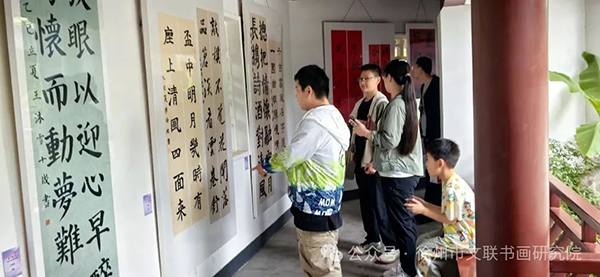開(kāi)展首日,快哉亭公園內(nèi)墨韻飄香,童趣盎然。徐州市文聯(lián)黨組成員、副主席林昊親臨現(xiàn)場(chǎng),與徐州市青少年藝術(shù)協(xié)會(huì)主席沈鵬,徐州市文聯(lián)書(shū)畫(huà)研究院成員羅東風(fēng)、臧海洋、曹譯文、田密等一同興致勃勃地參觀(guān)了展覽。展示長(zhǎng)廊里,一幅幅由少年兒童創(chuàng)作的楹聯(lián)書(shū)法與國(guó)畫(huà)作品,以獨(dú)特的視角、斑斕的色彩和稚拙的筆觸,生動(dòng)詮釋了他們對(duì)家鄉(xiāng)名勝快哉亭的理解、對(duì)傳統(tǒng)文化的熱愛(ài)以及對(duì)美好未來(lái)的憧憬。作品或工整嚴(yán)謹(jǐn),或天真爛漫,將古老的楹聯(lián)藝術(shù)與童心的無(wú)限想象巧妙融合,展現(xiàn)了新時(shí)代徐州少年兒童的文化素養(yǎng)和藝術(shù)才華。