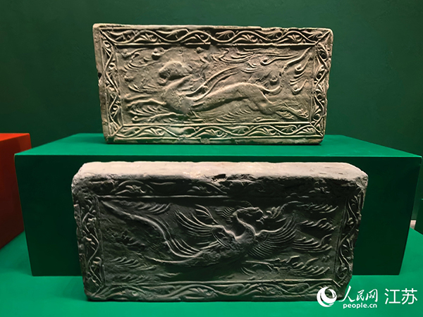 南朝白虎與朱雀畫像磚。人民網(wǎng)記者 王繼亮攝