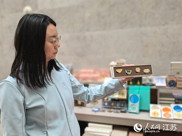 工作人員展示文創(chuàng)產(chǎn)品。人民網(wǎng)記者 王繼亮攝