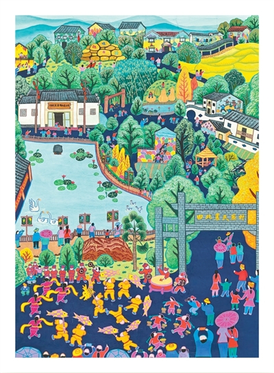 江西萬(wàn)安縣農(nóng)民畫(huà)家王仲能的作品《畫(huà)里人家》。