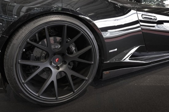 DMC為該車安裝了20英寸和21英寸的黑色Y輻輪轂,分別匹配255/30ZR20和325/25ZR21輪胎。另外,DMC也為該車提供了高性能制動系統(tǒng),采用黑絲制動卡鉗。