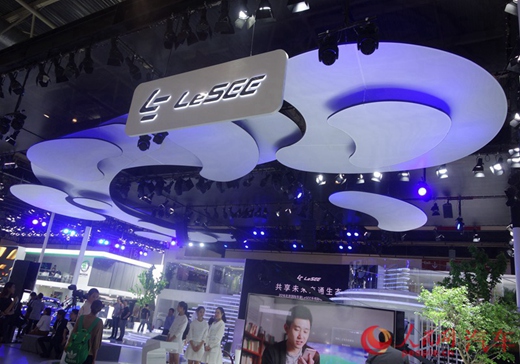 Lesee汽車的展臺富有科技感,上部的云不知是否意味云互聯(lián)。