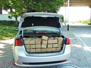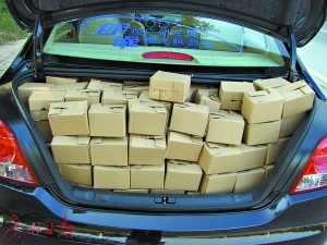 此次測試采用量具是國家標準的12號和4號郵政紙箱,尺寸分別是130/80/90mm和350/190/230mm,體積分別為0.936L和15.3L。在不影響車輛關閉的前提下,量塊填滿行李廂,統(tǒng)計量塊數(shù)量,進而計算行李廂測試容積。