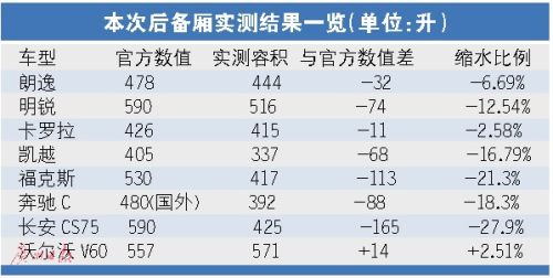 與此形成鮮明對比的歐美,當?shù)卣济鞔_要求汽車主機廠對上市車型的行李廂進行測試,并在汽車參數(shù)表中詳細注明,以供消費者參考。不過,歐美銷售車型的行李廂容積同樣摻水。外國汽車媒體也進行過類似測試,縮水與國內(nèi)一樣嚴重。顯然,在行李廂容積上做手腳,并非中國獨有。