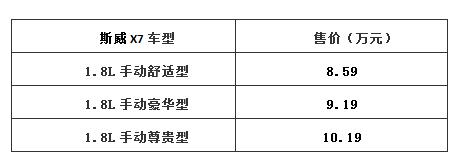 7座SUV斯威X7正式上市 售價(jià)8.59-10.19萬(wàn)元