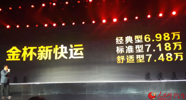 人民網(wǎng)北京11月3日電(曹淼)11月2日,金杯品牌旗下最新商用車型——金杯新快運在京上市。此次上市的華晨金杯新快運是金杯第七代車型,共計3款車型,售價區(qū)間為6.98-7.48萬元。