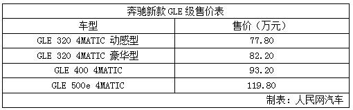 人民網(wǎng)北京11月25日電(鄂智超)近日,梅賽德斯-奔馳官方宣布,旗下的新款GLE級正式上市。新車推出了四款車型,全部配有四驅(qū)系統(tǒng),售價區(qū)間為77.80-119.80萬元。