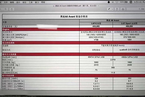動(dòng)力方面,將引入國(guó)內(nèi)的A6 Avant提供1.8T和2.0T兩種動(dòng)力。其中,1.8T發(fā)動(dòng)機(jī)的最大功率為190PS,峰值扭矩為320Nm;2.0T發(fā)動(dòng)機(jī)的最大功率為252PS,峰值扭矩為370Nm。