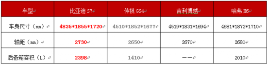 空間似乎是SUV圈內(nèi)永恒不變的話題,我們今天介紹的四款車型的空間差距,肉眼可見。作為四款車型中唯一的真七座大空間SUV,比亞迪S7的空間實力毋庸置疑甩了其余幾款車幾條街,2398L的超大可變?nèi)莘e在大家庭出游時,消除你的所有顧慮,讓全家輕松享受一場說走就走的旅行。與此同時,針對大家最為關(guān)心的后排空間,S7也是實力與口碑俱佳。當(dāng)然,五座SUV也并不代表空間水平差,哈弗H6與吉利博越的空間水平相差無幾,合理的布局也使得這兩款車型的儲物空間表現(xiàn)不錯,遠超同為5座SUV的傳祺GS4。