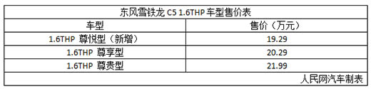 售19.29萬元 東風雪鐵龍C5 1.6THP尊悅型上市
