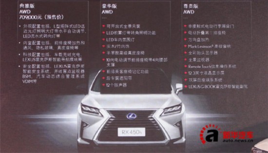 雷克薩斯全新RX450h預(yù)售價(jià)