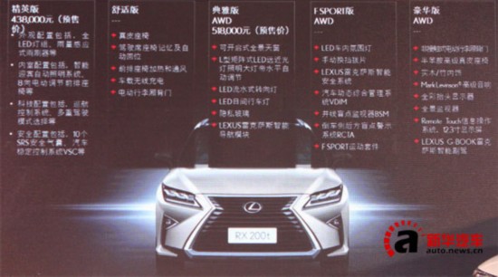雷克薩斯全新RX200t預(yù)售價(jià)