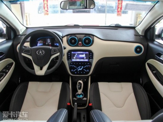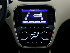 在內(nèi)飾方面,江淮iEV5的設(shè)計顯得比較時尚。黑色和米色相搭配的內(nèi)飾讓人感覺非常溫馨,而空調(diào)出風(fēng)口和換擋桿位置則采用了艷麗的天藍色,再加上中控面板所使用的藍色背光,又能帶給人一種有些神秘的感覺。江淮iEV5采用全電子儀表盤,左、右兩側(cè)分別顯示電池溫度和剩余電量,中間則是行車電腦顯示屏。中控區(qū)域配備了一塊大尺寸觸摸式液晶屏,除影音娛樂、車載藍牙電話和GPS導(dǎo)航等基本的功能外,車輛動力系統(tǒng)的運行狀態(tài)也能夠通過該屏幕進行實時監(jiān)測。