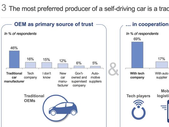 據(jù)了解,這份報告的受訪者覆蓋范圍很廣,其中法、德、日三國的受訪者對傳統(tǒng)汽車制造商的信任度更高,比例占到50%至58%。而在美國這一數(shù)字只有32%。