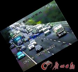 2015年11月21日13時25分左右,廣州交警接到群眾報案,稱在機(jī)場高速南行18公里+622處(介于平沙跟蚌湖之間)發(fā)生一宗兩小車碰撞的交通事故,其中一輛小車的駕駛員被困車內(nèi),導(dǎo)致該路段交通出現(xiàn)緩慢。接報后,廣州交警迅速前往事故現(xiàn)場進(jìn)行處置工作。