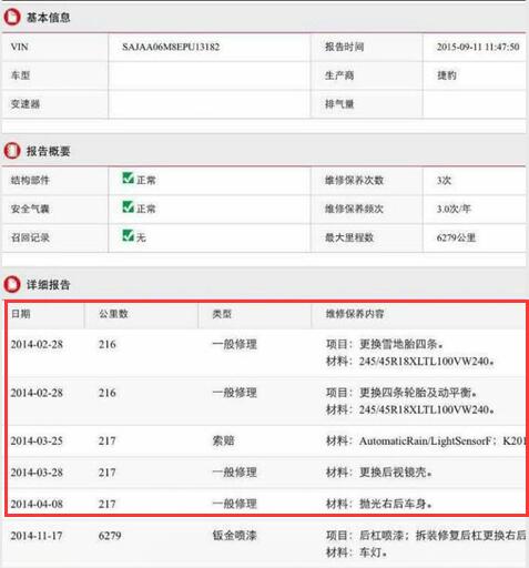 從成都運通捷豹4S店調(diào)出的維修記錄