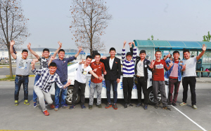 聾啞學(xué)員在學(xué)習(xí)駕駛技術(shù)時合影。     通訊員 章新 攝