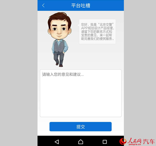 在記者體驗(yàn)北京交警APP的過(guò)程中,出現(xiàn)了一些小問(wèn)題與缺陷,而目前在APP中也提供了提交修改意見(jiàn)的頁(yè)面,以不斷完善APP的運(yùn)行。在本次體驗(yàn)中出現(xiàn)的幾個(gè)問(wèn)題主要有: