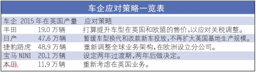 勞斯萊斯、捷豹路虎好處理,豪華車售價(jià)高,單車?yán)麧櫞,可以?nèi)部消化。日產(chǎn)、豐田、本田、MINI則不然,3%的零配件進(jìn)口稅加上10%的整車出口稅,便是13個百分點(diǎn),是汽車生產(chǎn)難以承受的比例,假如全部反映在汽車售價(jià)上,消費(fèi)者也不愿意買單。“脫歐”公投之前,車企公開表達(dá)反對意見。但這些努力都沒有達(dá)到效果。