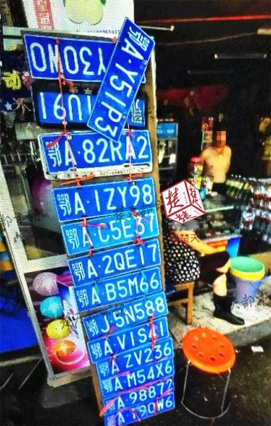 今日中午,楚天都市報記者在現(xiàn)場看到,這個副食店門口一共掛有14塊車牌,店門口一名中年婦女的凳子上還摞著七八塊車牌,基本上都是武漢本地的,也有湖南等外地的。記者詢問女子如何領(lǐng)車牌,她說核實行車證后,一百元可領(lǐng)走。記者希望能夠少一點,對方稱都是別人撈了放在這里請她代還車主,有的人好說話,有的人不好說話,別個撈車牌也很辛苦,有的人都被劃傷了。